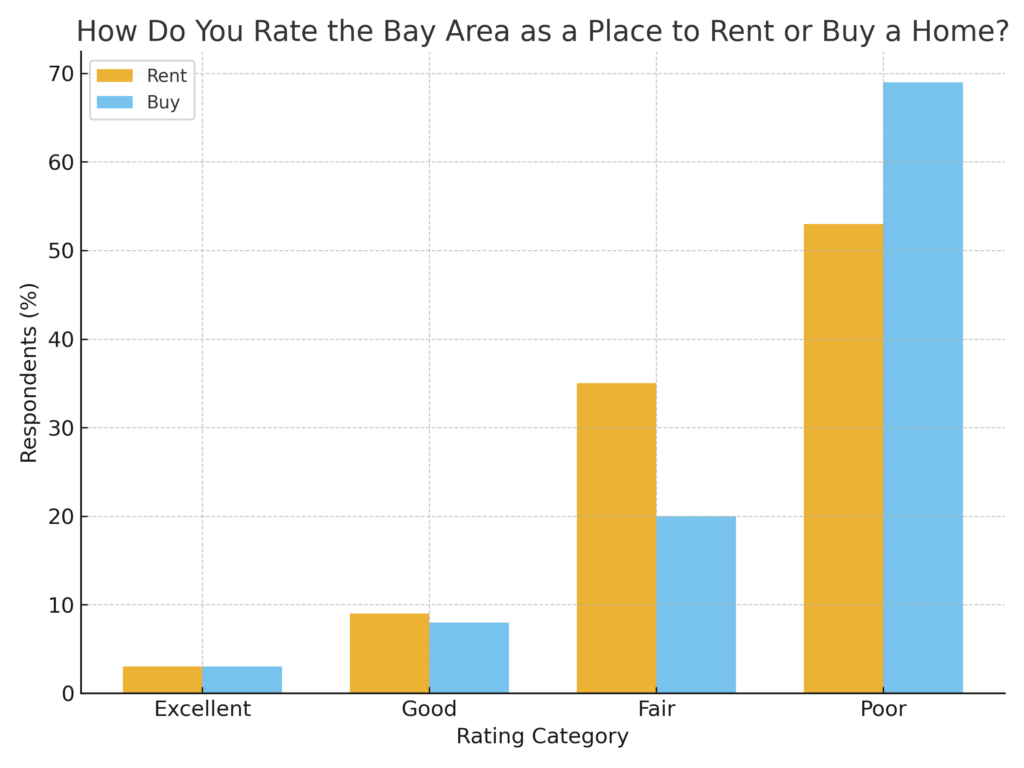 - Only 3% rated the Bay Area as an excellent place to rent, and another 3% said it is excellent for buying.